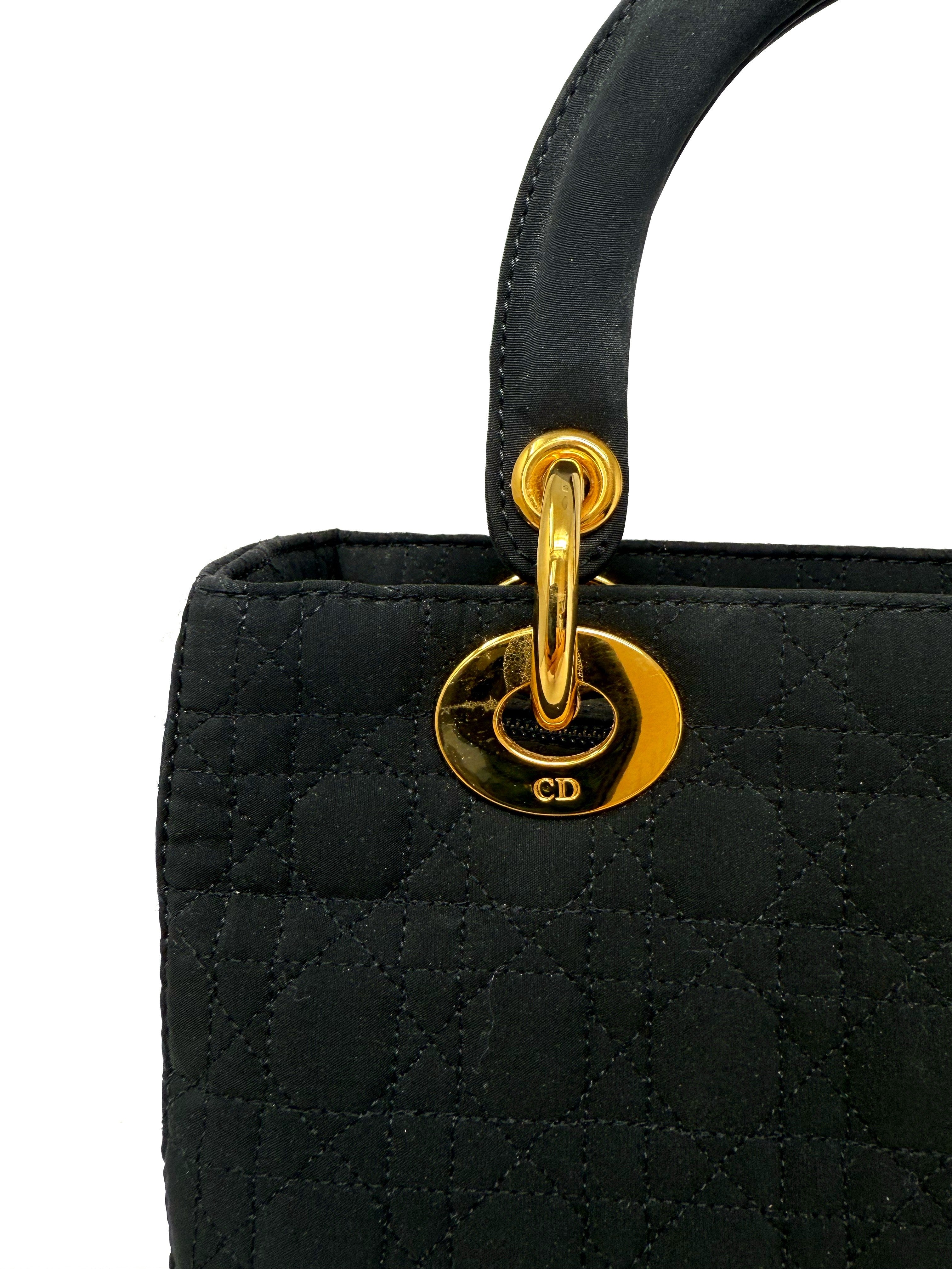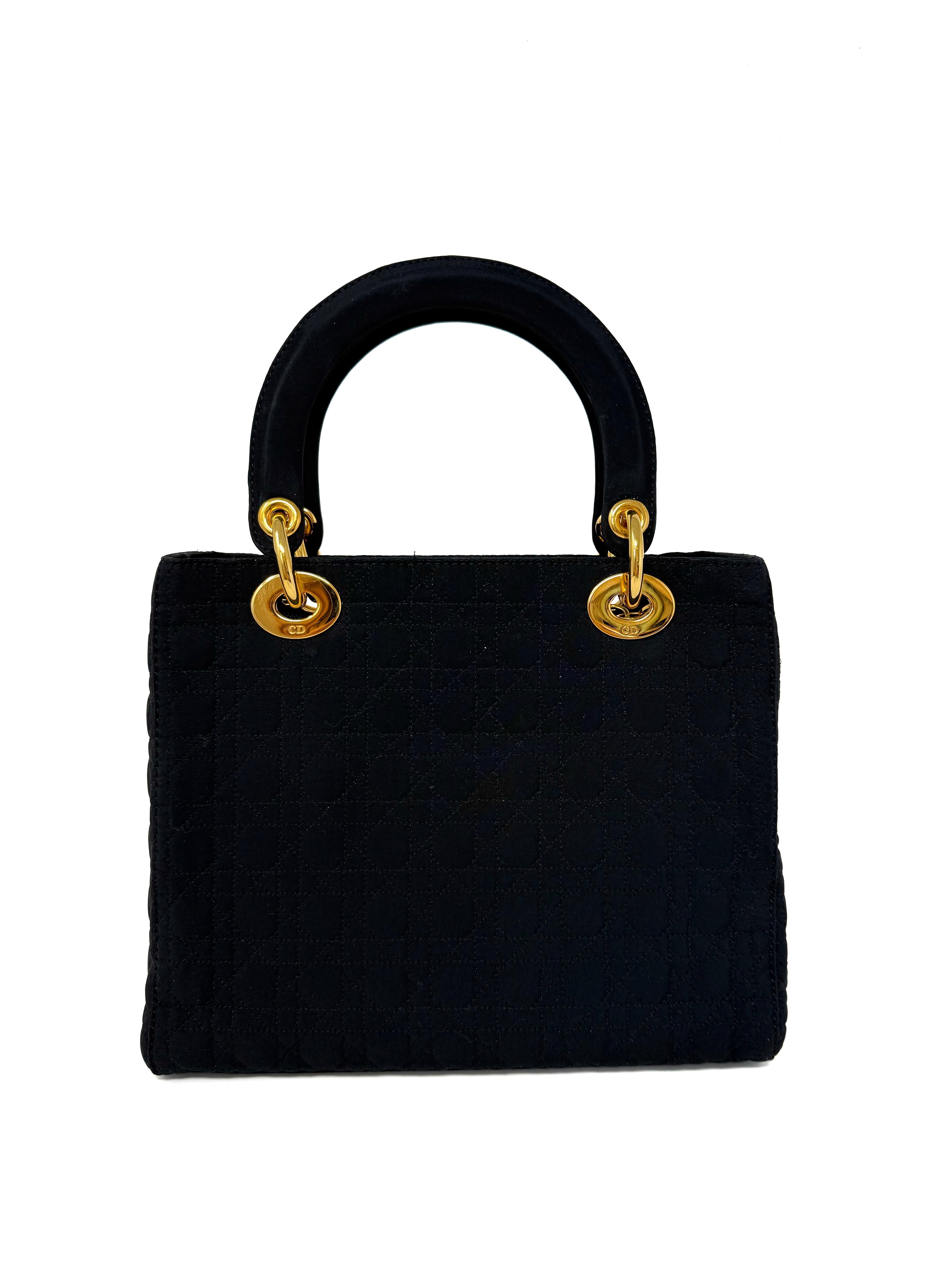 Lady Dior 手袋 – 黑色帆布 Cannage 图案(复古经典款)