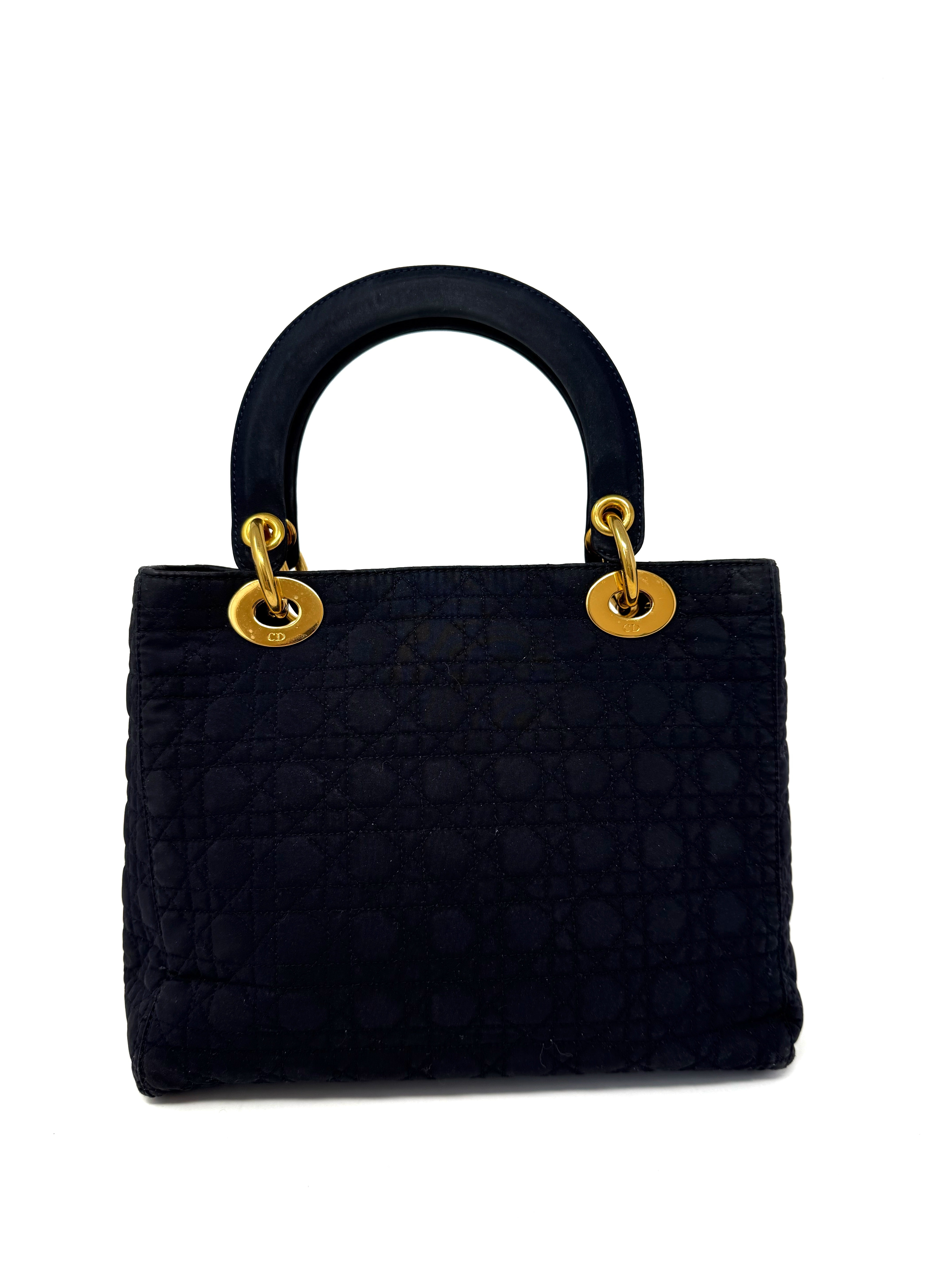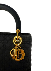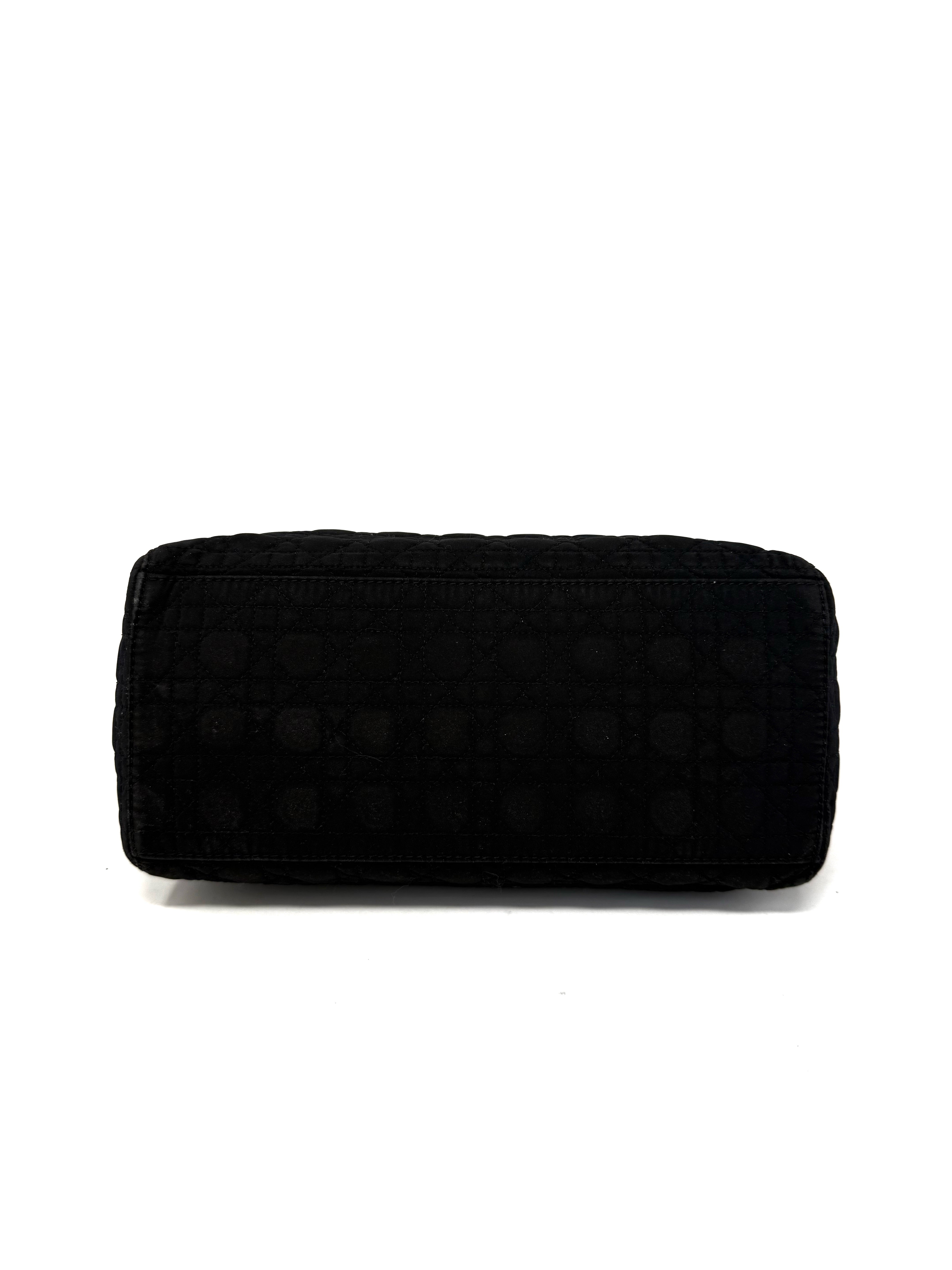 Dior Lady Dior 黑色帆布藤格纹手提包